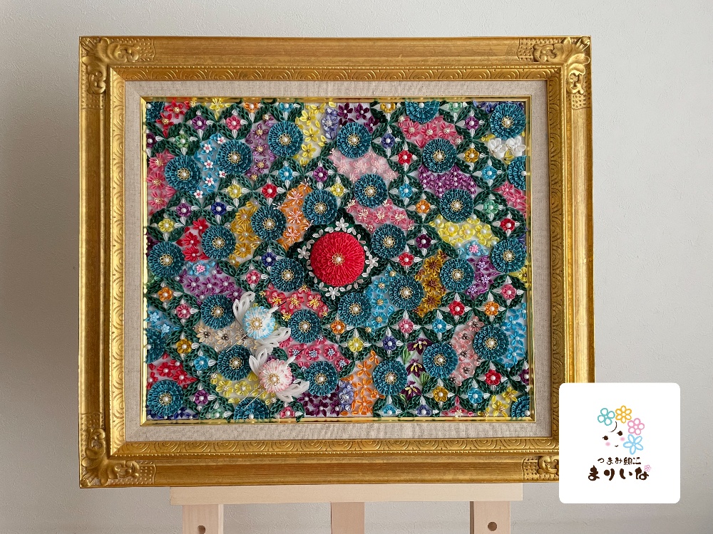 そこから始まるつまみ細工の作業も数ヶ月かけて、色味を調整したり、その時のインスピレーションを大切に、独自の感覚で制作しています。