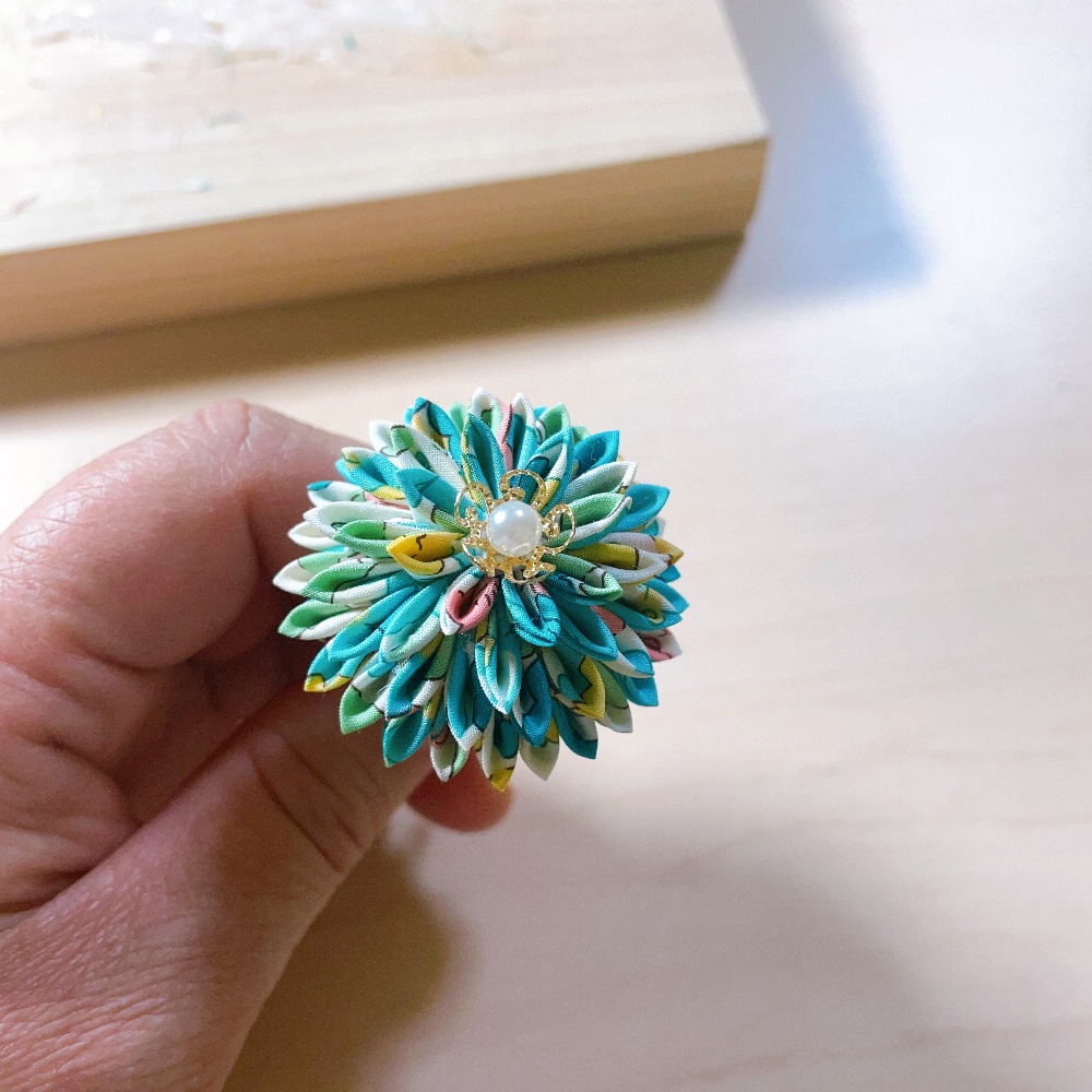 ミントの色がとっても可愛い、そしてポイントにいくつものカラー小ぶりの可愛いお花が完成しました。この作品はアクセサリーになってもうすぐショップに並ぶ予定です。お楽しみに❤️話は変わり、知り合いの方からこんな声をいただきました。つまみ細工まりいな?一般社団法人つまみ細工アート幾何学協会?どちら?と聞かれました。どちらもわたしです。イメージとしたら、「まりいな」の中に一般社団法人つまみ細工アート幾何学協会が入っているというイメージです。どうぞよろしくお願いいたします。